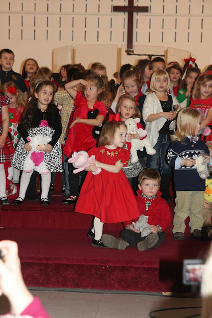 I look forward to the Christmas program all year long. There is nothing sweeter to me than a bunch of preschoolers singing Christmas carols. This year was extra sweet because BOTH of my babies were in it!! I never knew the amount of pride and excitement I would experience watching my own child perform but multiply that times 2 and my excitement was busting through the roof! We were SO proud watching our babies up there. It is so fun!! I was a little worried because it was at 1:30 on a school day for Ella. Most days that I pick Ella up after school she can barely function she is so tired. But she was awesome! And loved being center of attention! Kade was awesome as well. The girl in front of him stood up and he stayed sitting down so we could only see part of him for about half the performance. But he sang the entire time! So proud of these guys!